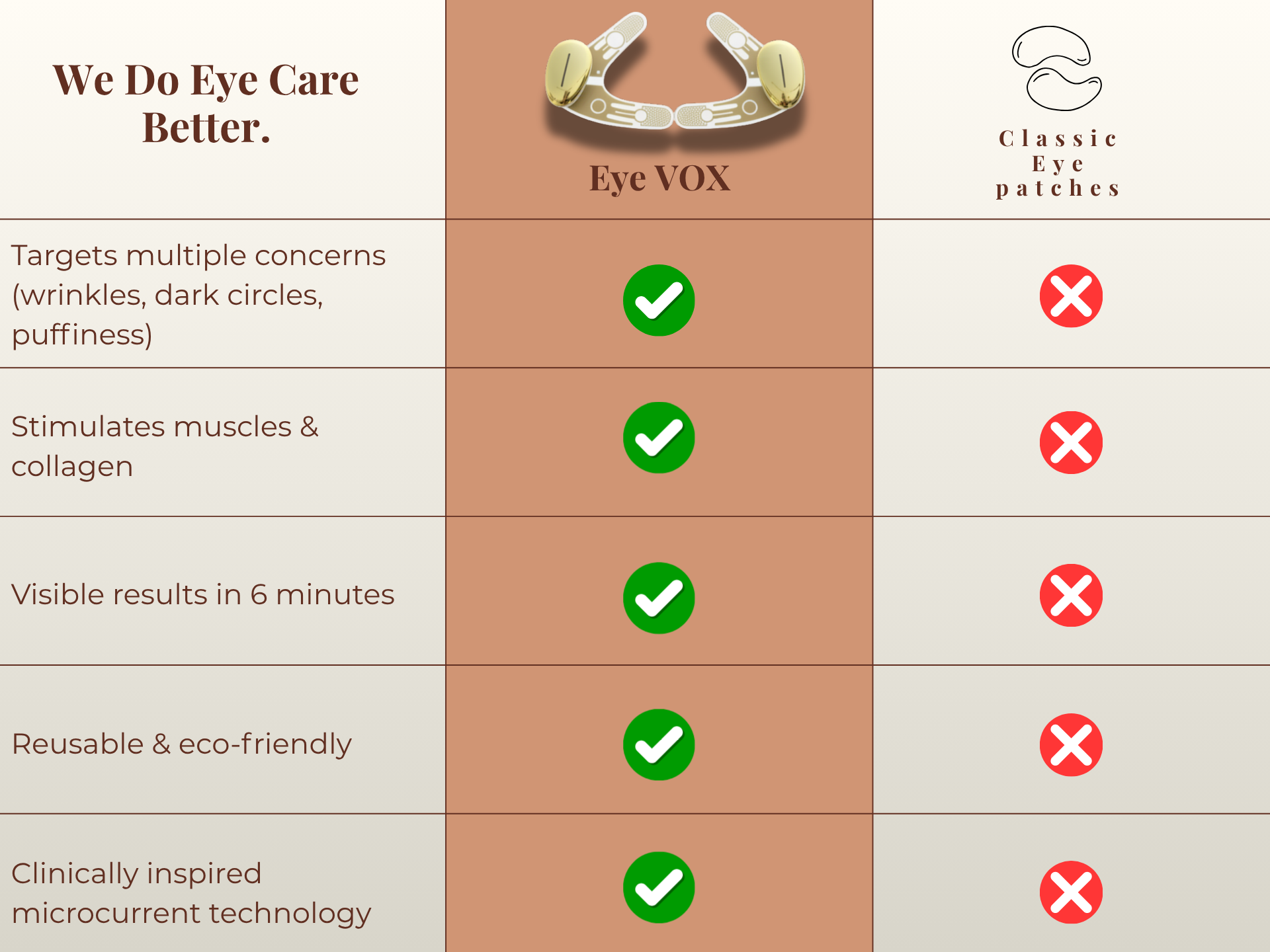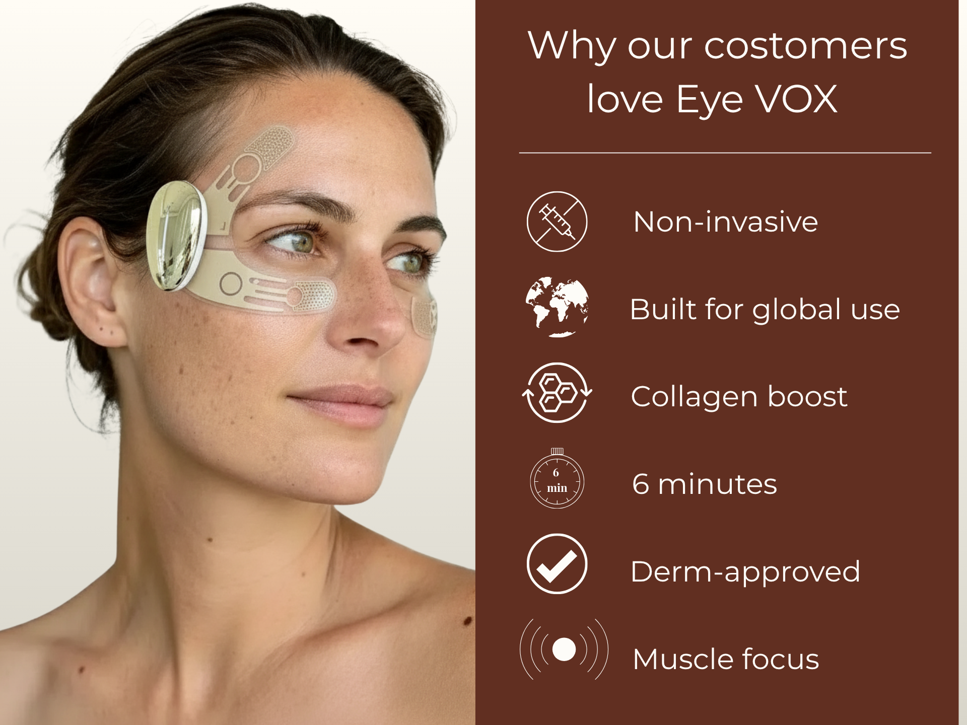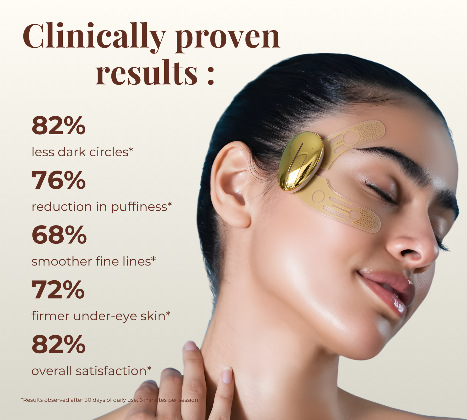 Ce sont des patches technologiques qui utilisent des micro-courants (EMS) pour stimuler les muscles du contour de l’œil. Contrairement aux patchs classiques, ils agissent en profondeur pour lifter, raffermir et lisser la peau naturellement.