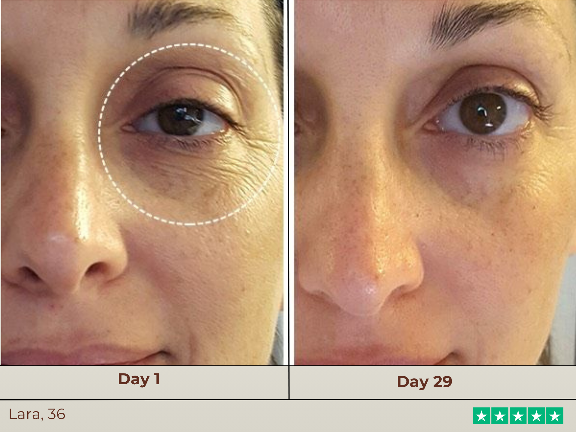 En 6 minutes, la fatigue s’efface : poches et cernes s’atténuent, la lumière revient.